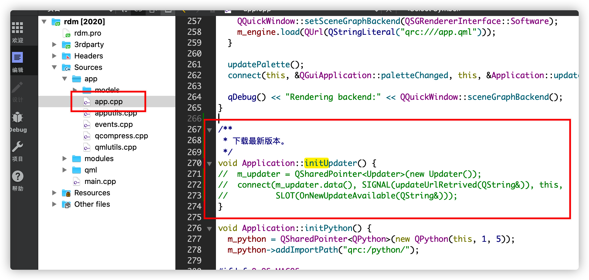 使用Qt Createor打开./src/rdm.pro。