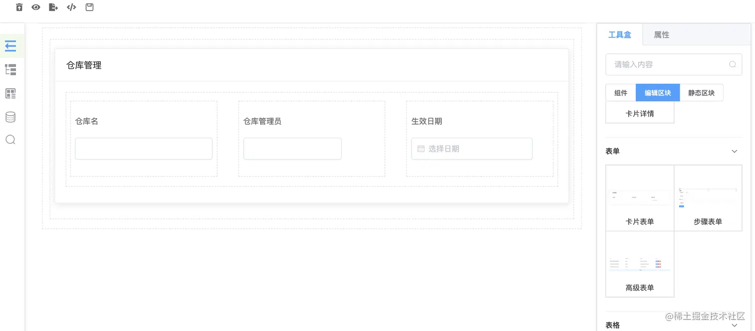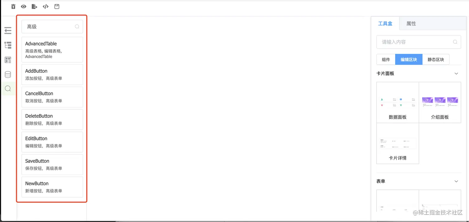 编辑区块,已高级表单为例: