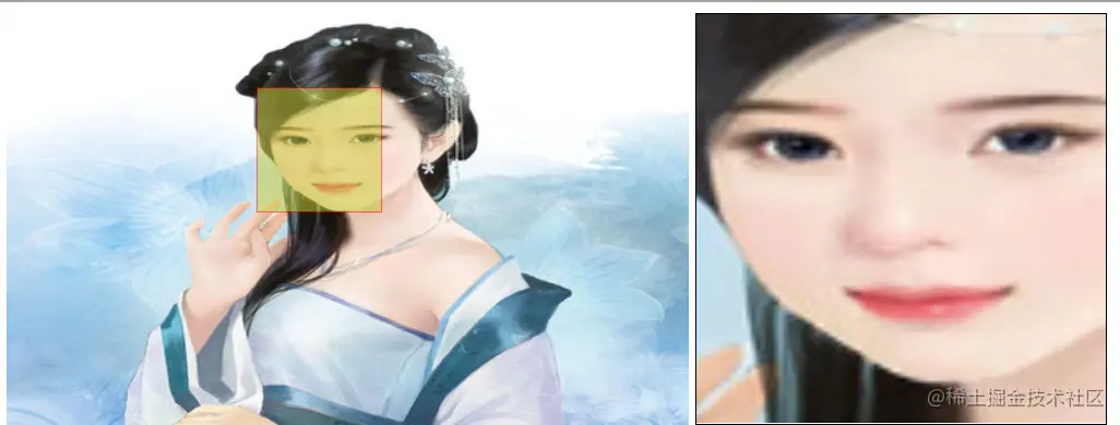 这便是效果图很像京东、淘宝的放大镜商品功能,这个功能我也是利用canvas开发的