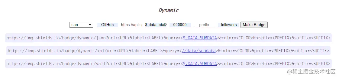 然后点右边的 Make Badage,就会看到效果展示了:
