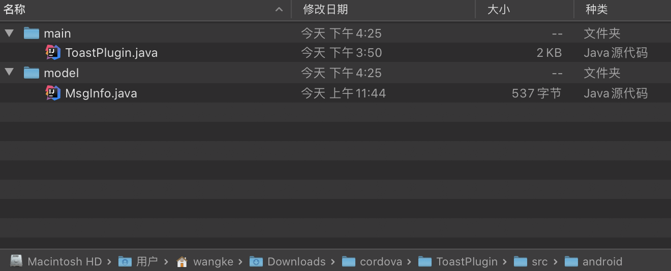 ⚠️ 当执行 plugin install 的命令安装插件时 cli 会将 www/ToastPlugin.js 拷贝到 platforms/android/platform_ww/