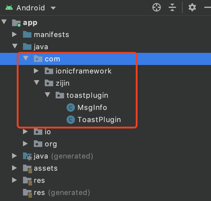 第一步:拷贝新增文件到插件包中,我们可以根据源代码的功能来组织文件的存放位置。源代码存放在 src/android 下。