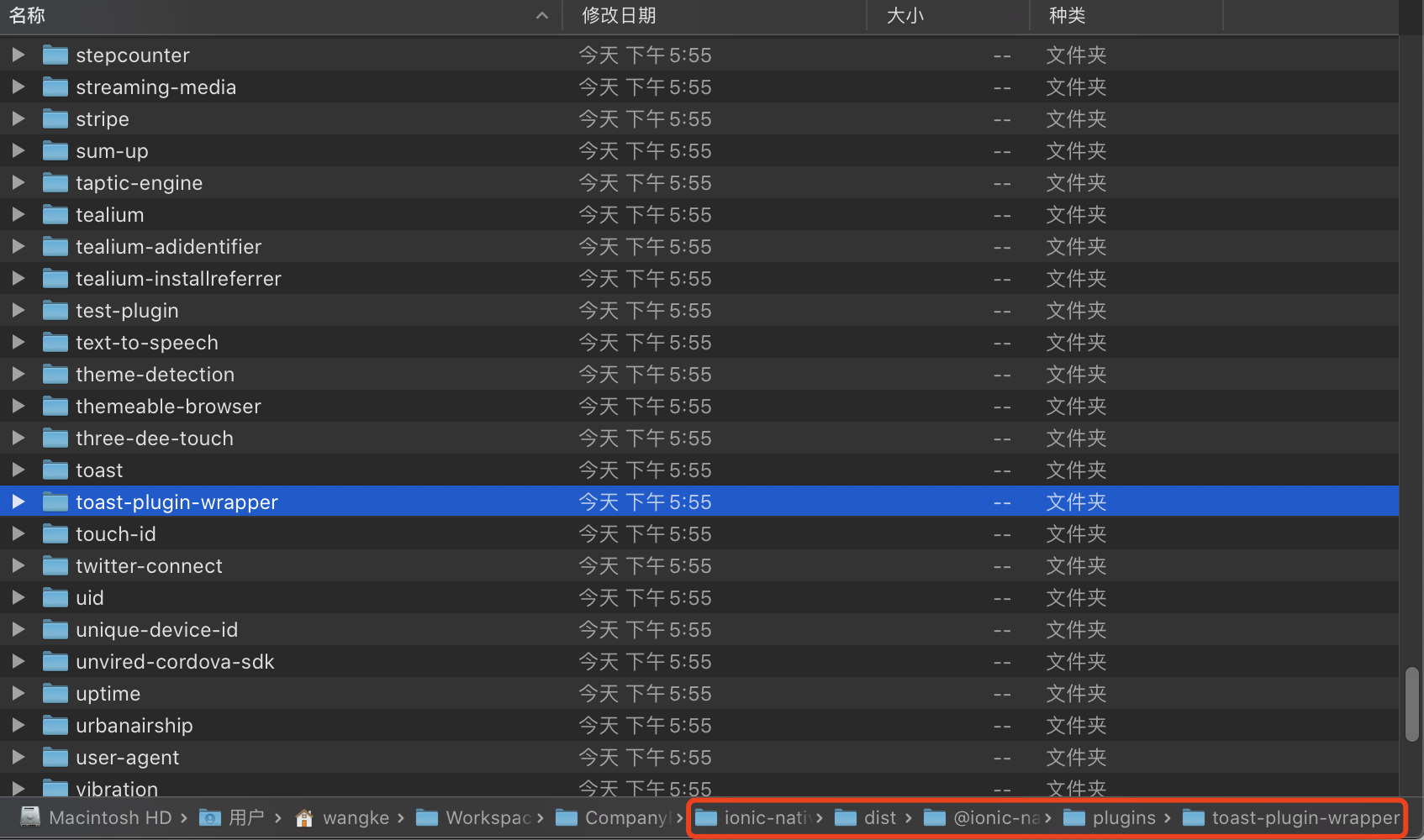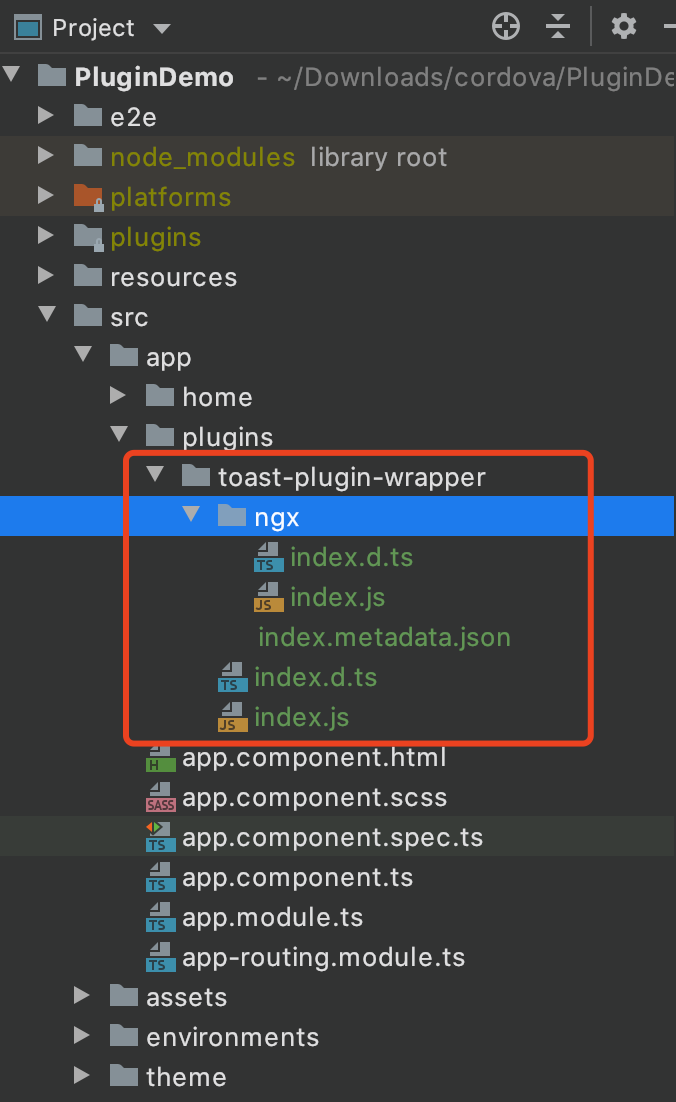 通过如下命令创建 ToastPlugin 的 index.ts 文件,在 /src/@ionic-native/plugins/toast-plugin-wrapper/ 下可以找到该文件。