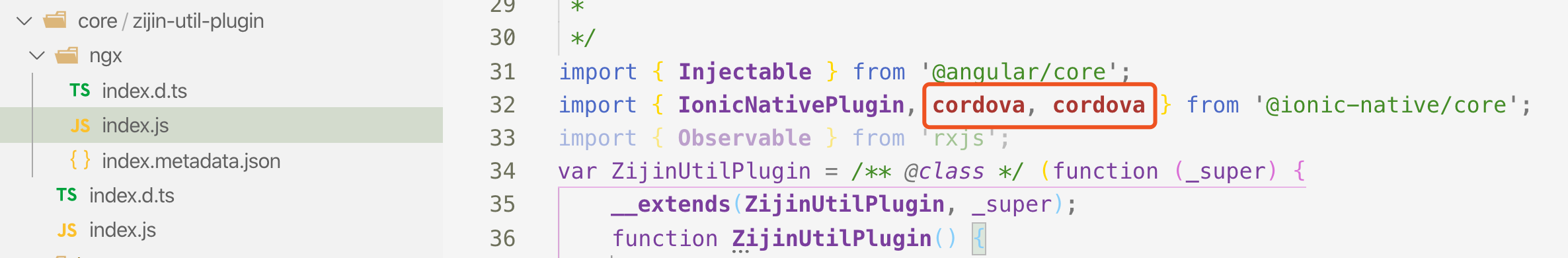 在 ionic-native 下编译生成的类型声明包中的 JavaScript 文件内会对 cordova 进行重复引用: