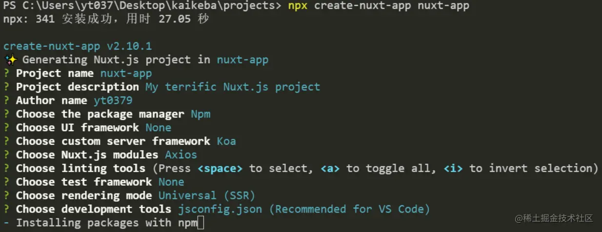 - 运行create-nuxt-app 确保安装了npx(npx在NPM版本5.2.0默认安装了):