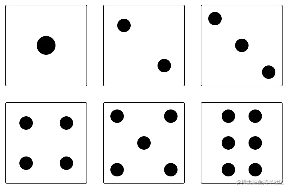 设置 骰子面为 flex 容器,然后设置 justify-content 为 center 让 圆点居中