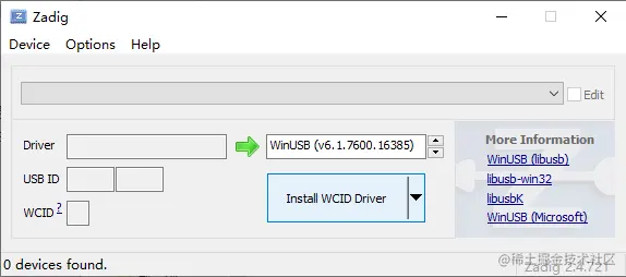 下载器连接电脑后,在设备管理器中会出现带感叹号的USBasp设备。由于我是Win 10系统,需要使用zadig安装驱动,Win 7及以下应该只需要搜索并安装USBasp驱动即可。