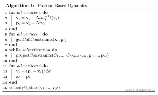 单独地求解每个约束C(x)。在一次迭代中,顶点位置的修正立即应用到下一个约束的求解。