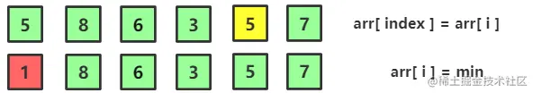 //一轮对比完成后,将默认的最小值赋予到找到的最值下标位置