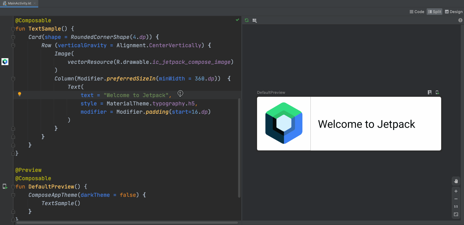 Android Studio 中包含了辅助您使用 Jetpack Compose 的强大工具,可以帮助您快速迭代 UI 元素。