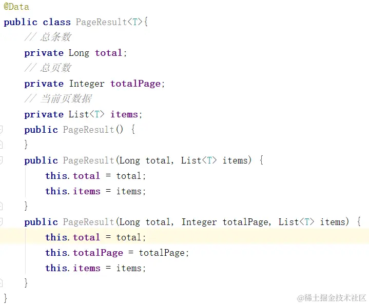 编写一个分页数据实体类,在其它业务中若是需要分页数据也可以使用这个类。
