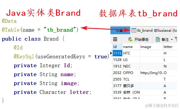 数据库中对应的数据表为tb_brand,编写实体类Brand和其一一对应。