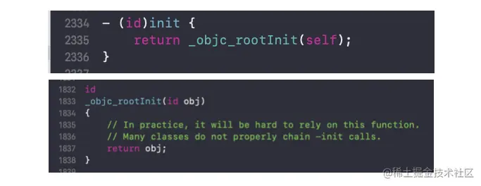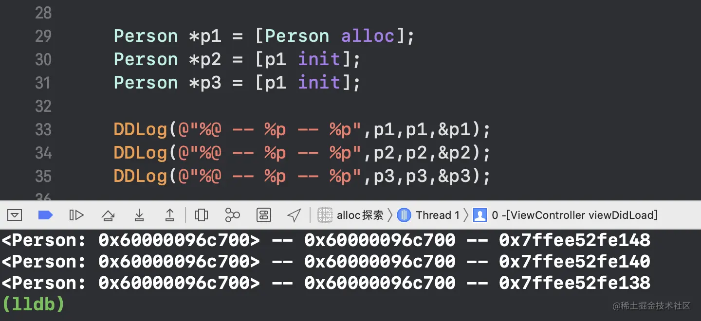 由源码我们可以看到,init方法只是返回了alloc得到的obj地址,所以开头案例,p1、p2、p3指向的指针都是相同的.