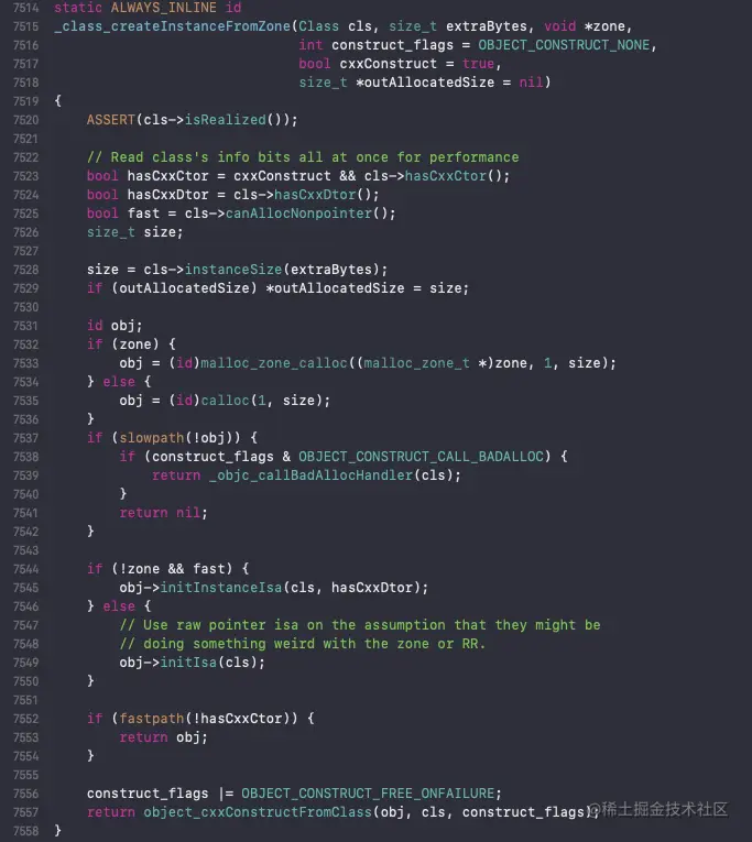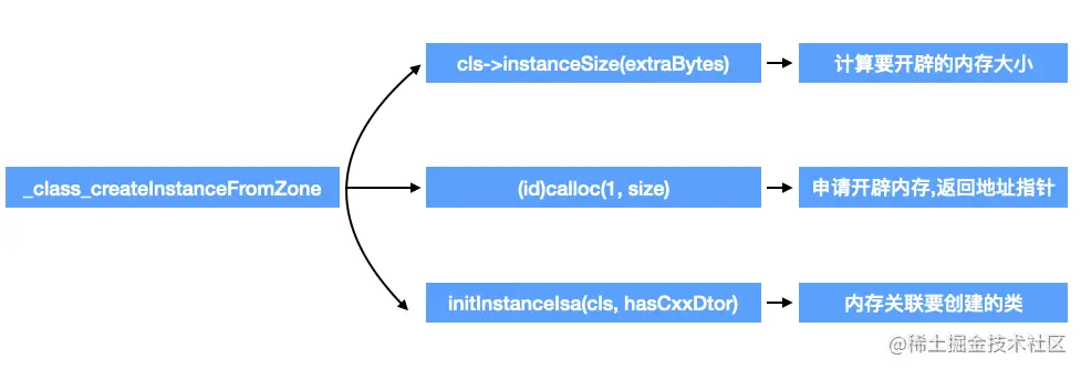 obj->initInstanceIsa(cls, hasCxxDtor);这个方法会将开辟的内存关联到要创建的类对象.