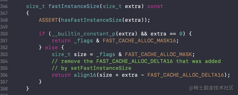 // 所以最终return了 “16”, 即size = cls->instanceSize(extraBytes) = 16.