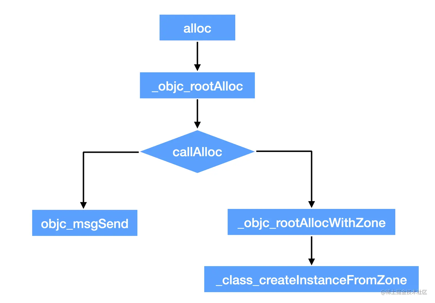 有过iOS开发基础的都知道,alloc init方法,会为要创建的对象,开辟一段内存空间并初始化类对象.那我们来看下图.