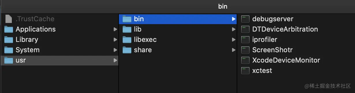 DeveloperDiskImage.dmg ,找到 /usr/bin/debugserver