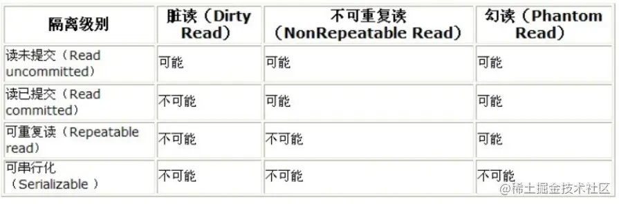 事务的四种隔离级别总结起来如下图所示。