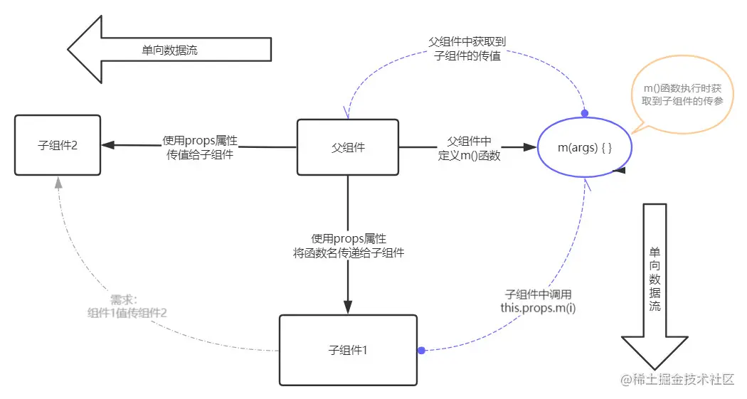 <button onClick={ this.handleClick }>child1子组件中获取数据</button>