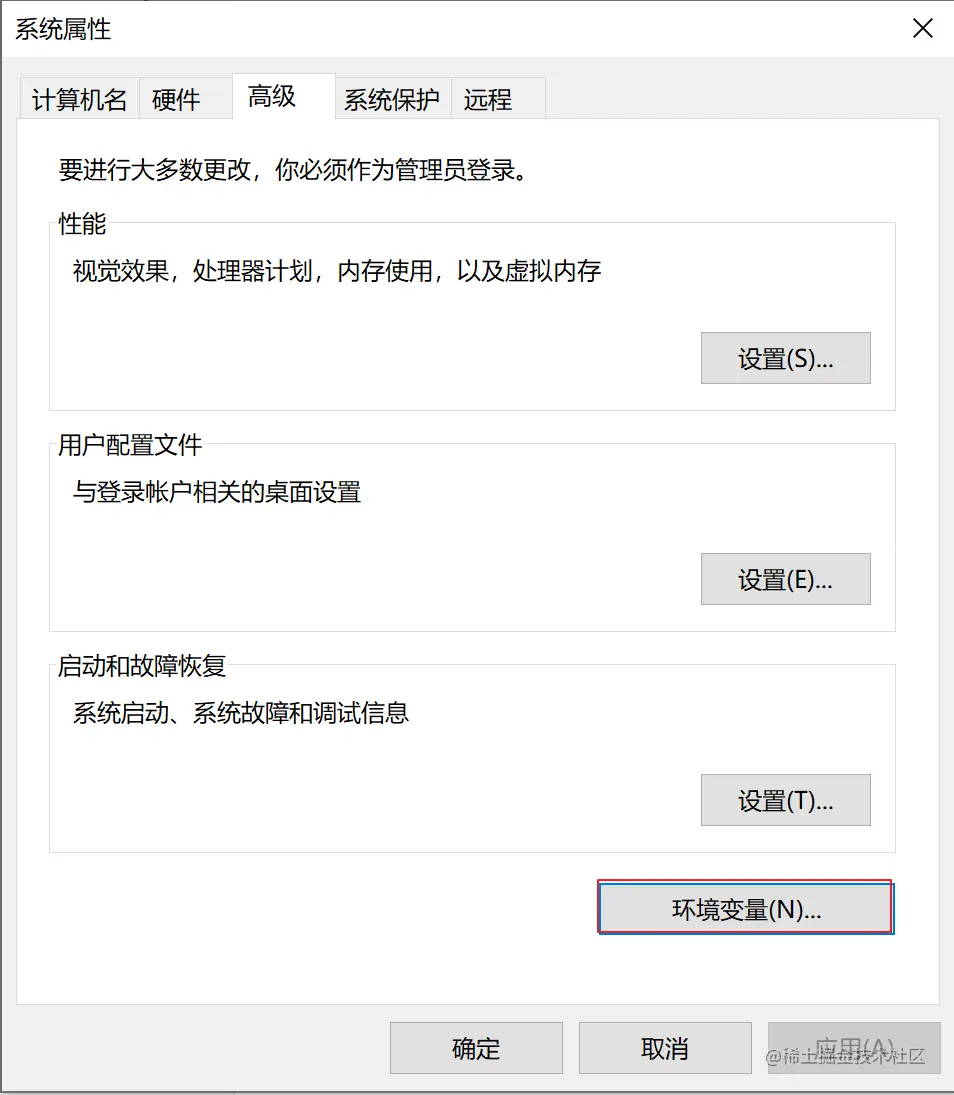 点击【环境变量】,打开系统环境变量配置;
