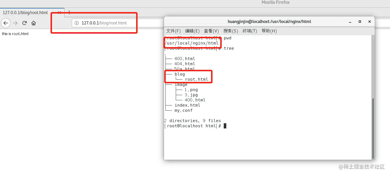 请求 http://127.0.0.1:80/blog/root.html 这个地址时,那么在服务器里面对应的真正的资源是 /usr/local/nginx/html/blog/root.html文件。可以发现真实的路径是root指定的值加上location指定的值。