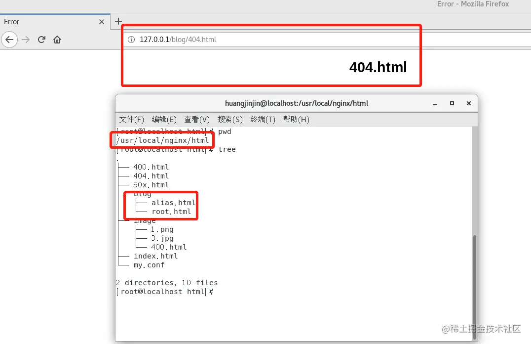 注:可以把/usr/local/nginx/html/alias.html目录下的alias.html移到/usr/local/nginx/html/blog/alias.html目录下,在访问http://127.0.0.1:80/blog/alias.html,直接返回404.html