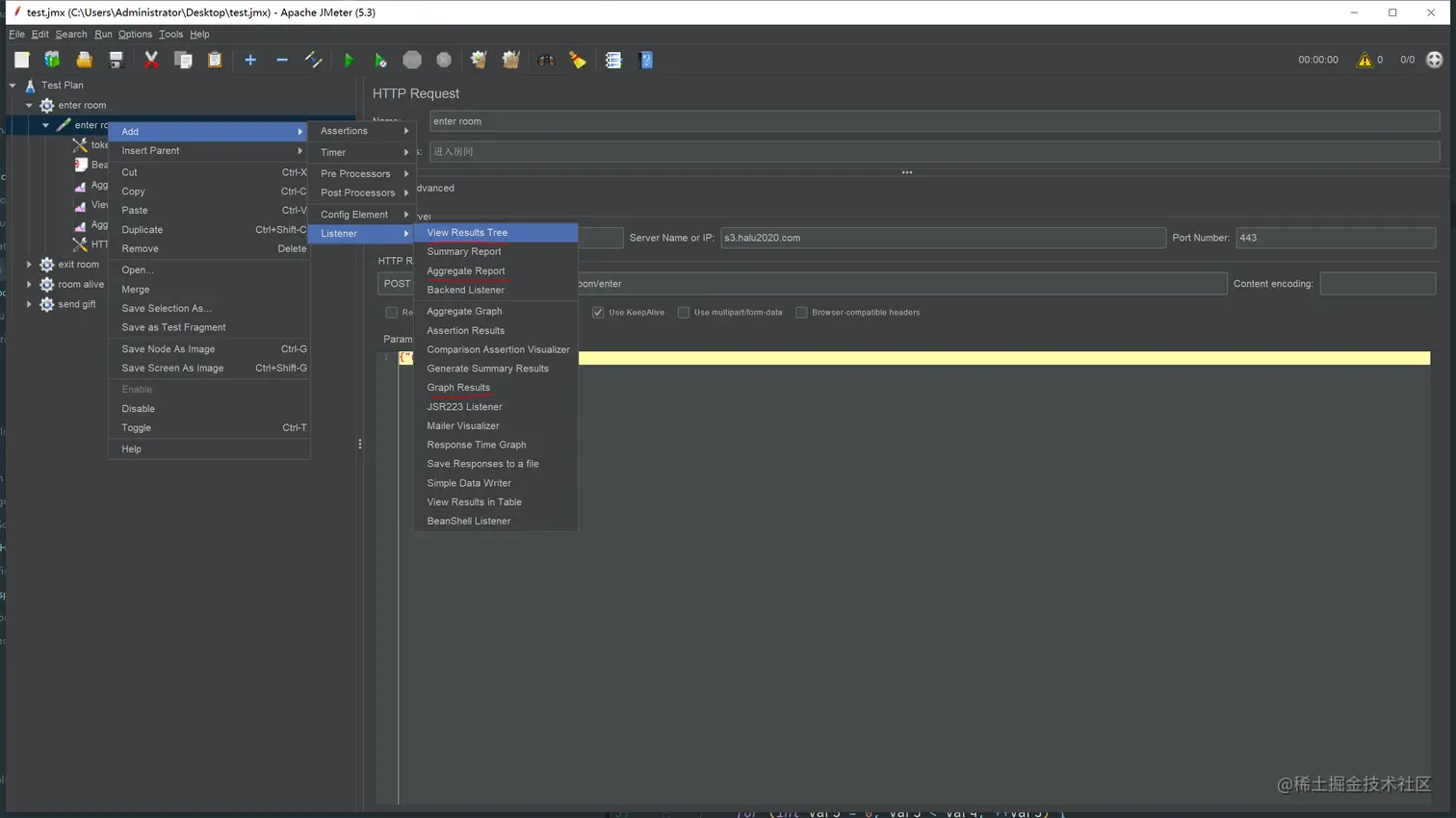 准备上架一款聊天app,上架之前准备做一些测试工作,模拟用户进入房间,维持心跳,房间送礼,发言等行为(因为用的第三方im以及声网,这些都是基于http的),也不是很懂测试,听老大说过一嘴,可以用jmeter,就尝试了下。