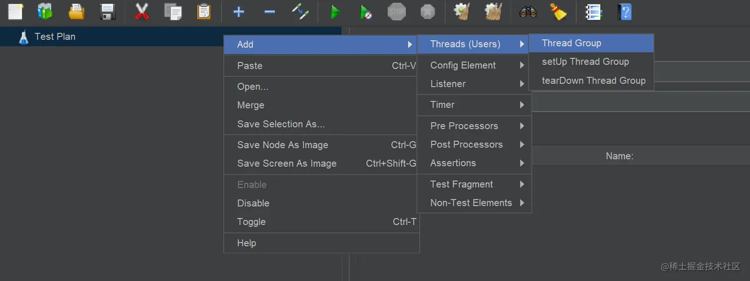 默认会有一个测试计划 test plan,可以改名也可以不改,我是懒得改