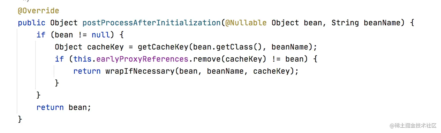 public Object postProcessAfterInitialization(@Nullable Object bean, String beanName) {