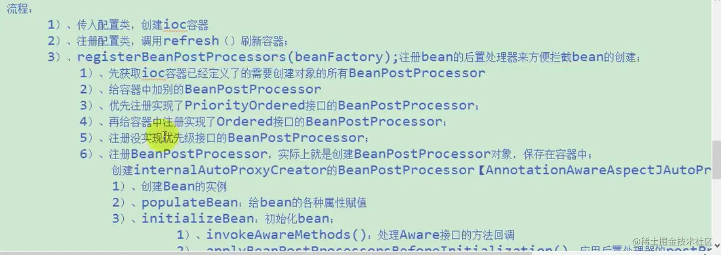 创建 AnnotationAwareAspectJAutoProxyCreator 放入容器中的过程, AnnotationAwareAspectJAutoProxyCreator实现了后置处理器接口, 因此也是后置处理器对象,相当于把他放入了容器中, 接下来所有的bean创建要被这个aop的后置处理器拦截.