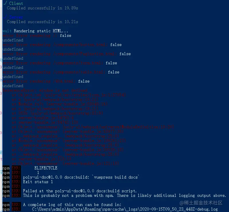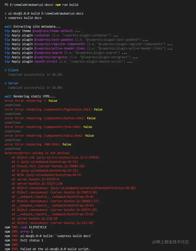 新建一个vuepress工程,按官网来打包都报一堆错