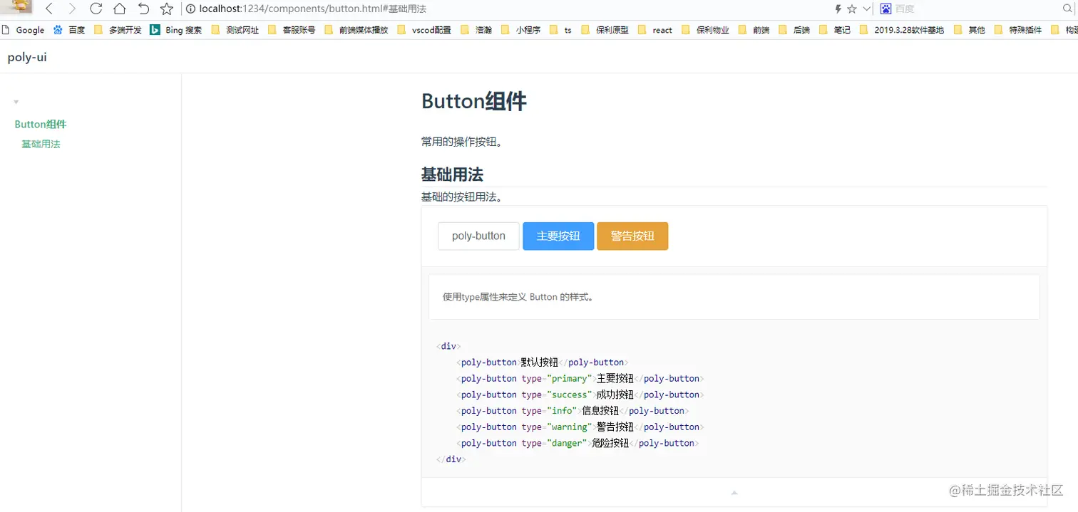 3.然后就可以通过标签去使用polyUI中的组件了<poly-button></poly-button>