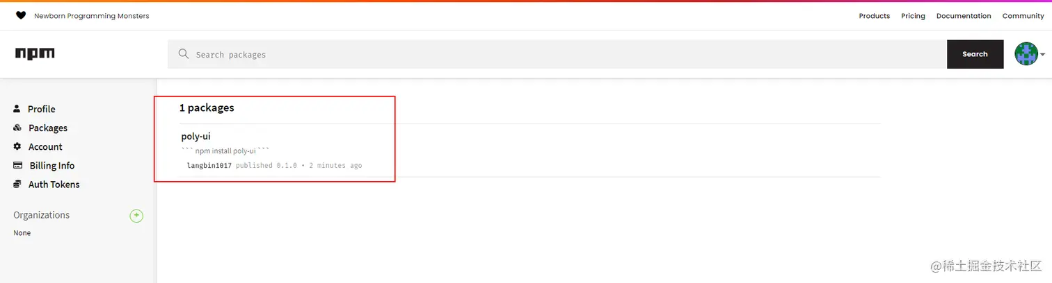 在npm账户下就可以看到这个包了