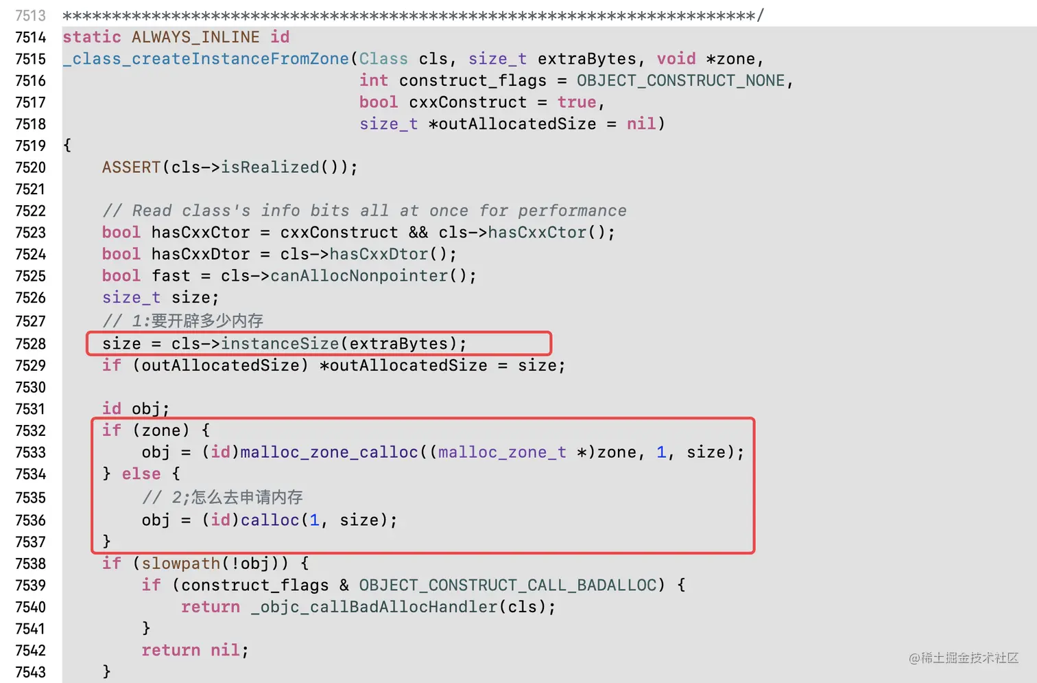 这里面调用了3个核心的函数:instanceSize、calloc、initInstanceIsa,这三个函数分别是干什么的呢?