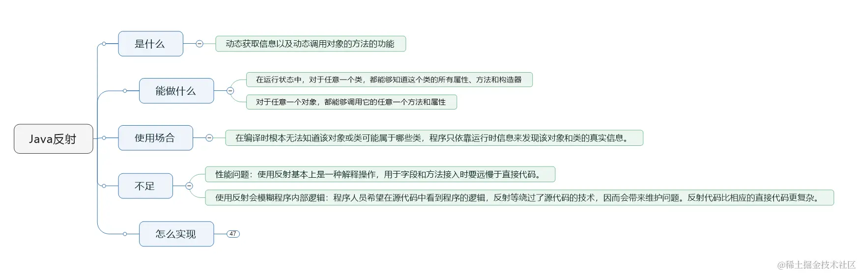 使用反射会模糊程序内部逻辑:程序人员希望在源代码中看到程序的逻辑,反射等绕过了源代码的技术,因而会带来维护问题。反射代码比相应的直接代码更复杂。