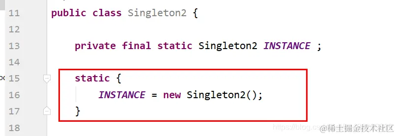 private final static Singleton2 INSTANCE ;