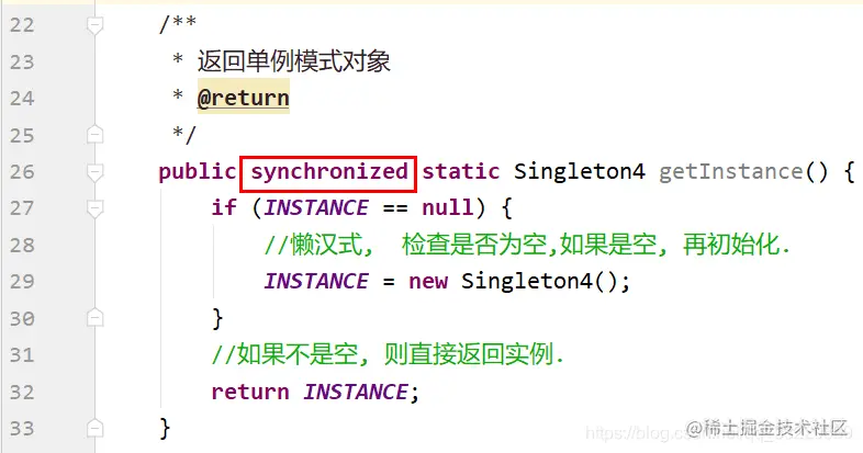 public synchronized static Singleton4 getInstance() {