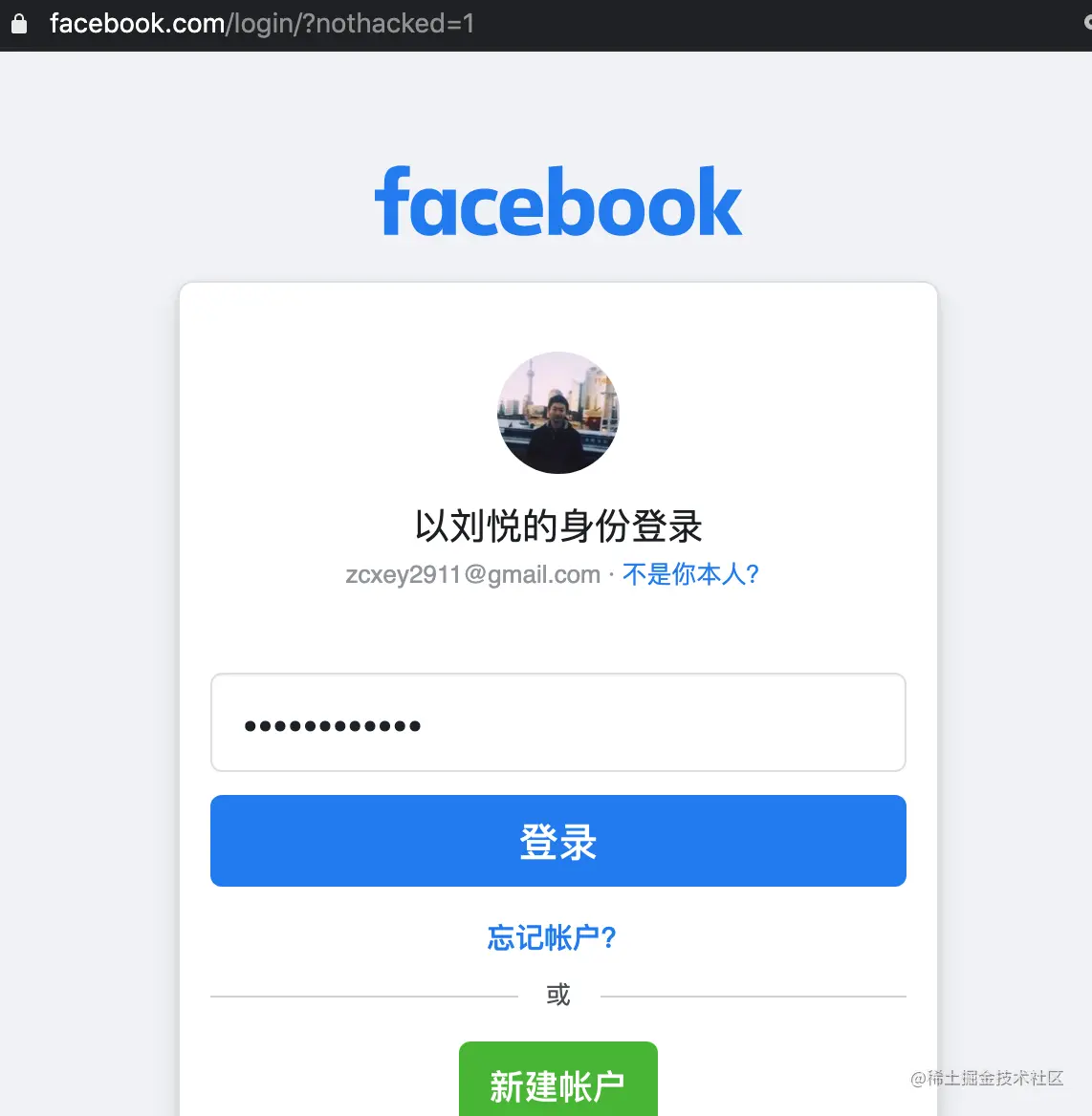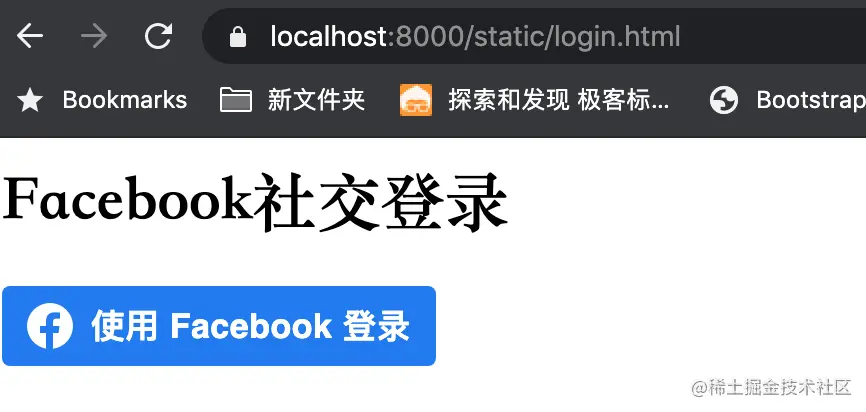 由于我们现在已经安全部署了本地服务,就可以继续操作FaceBook了,编写login.html作为登录页面: