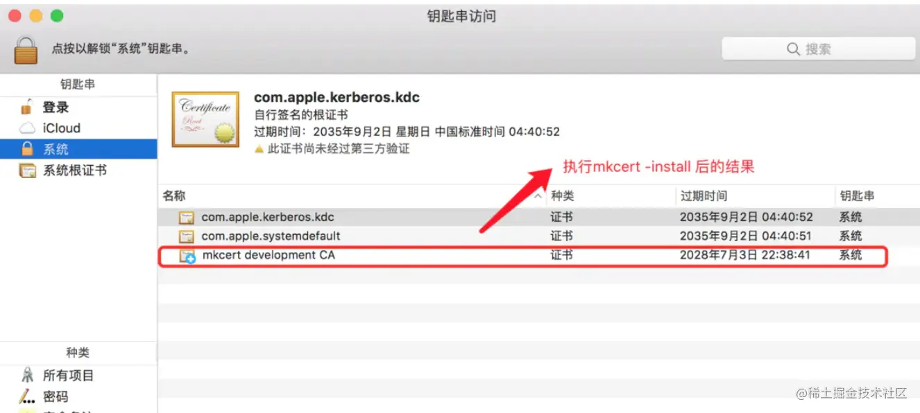 安装成功之后,运行命令将CA证书加入本地可信CA: