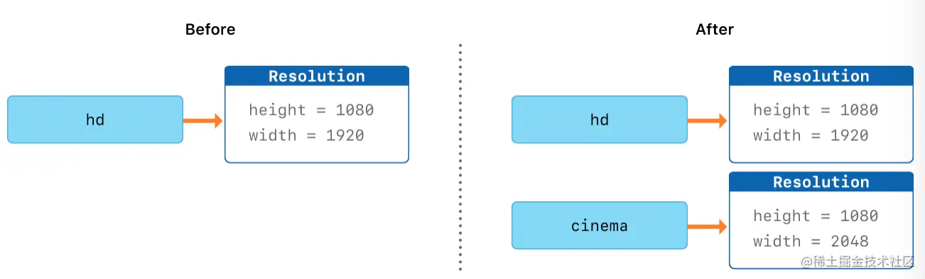 当把函数或闭包赋值给常量或是变量时,本质上是把常量或是变量设置为函数或闭包的引用,即 incrementByTen 和 incrementByTen 引用的不是闭包本身。
