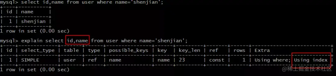 select id,name from user where name='shenjian';