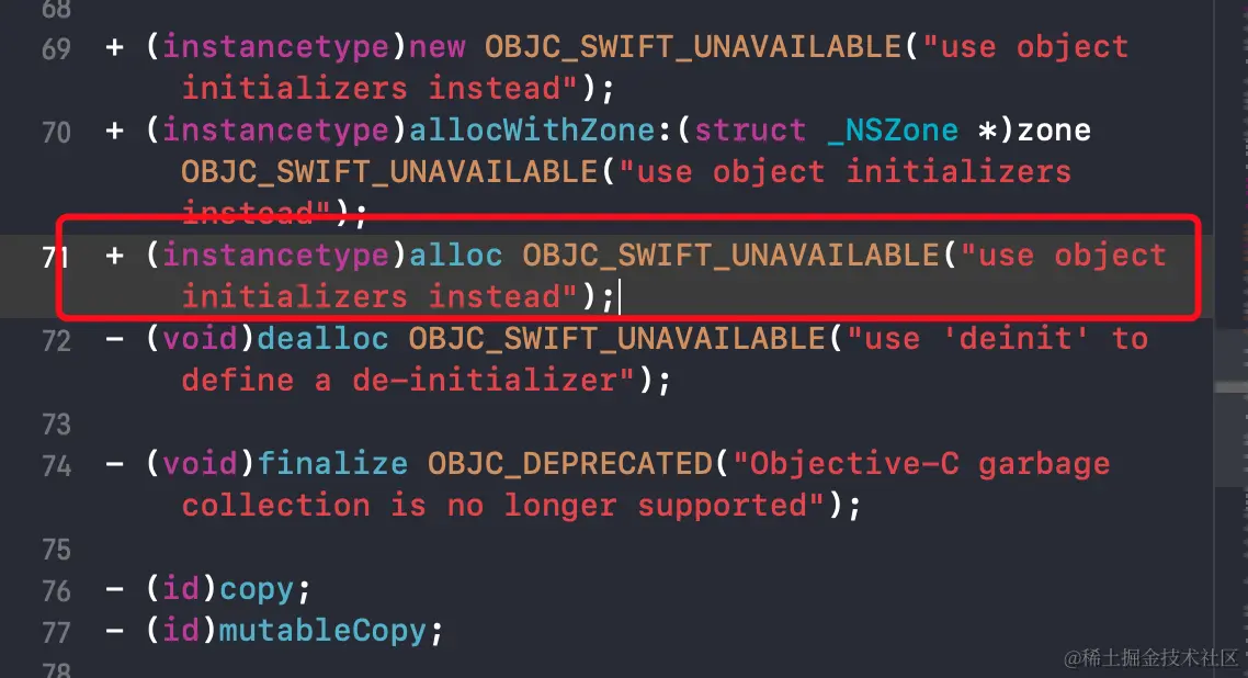 new方法调用了callAlloc方法,这只是上面alloc方法调用步骤中的一个,所以new是不能等同于alloc的,不建议直接调用new方法,主要原因是它没有办法调用重写自定义的init方法.