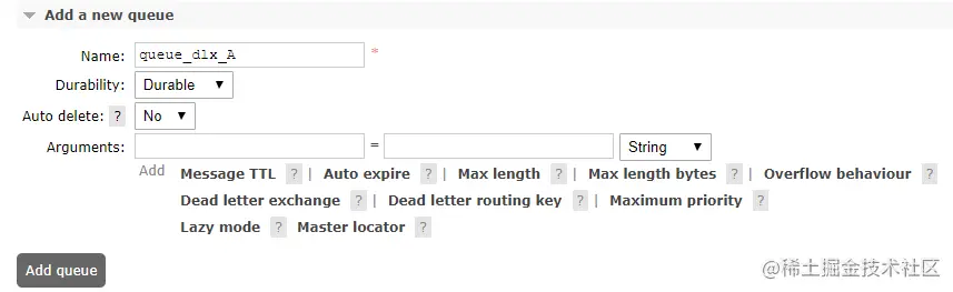 - x-dead-letter-exchange: 用来设置死信后发送的交换机,这里指明的为 rabbit_dlx_exchange 交换机
