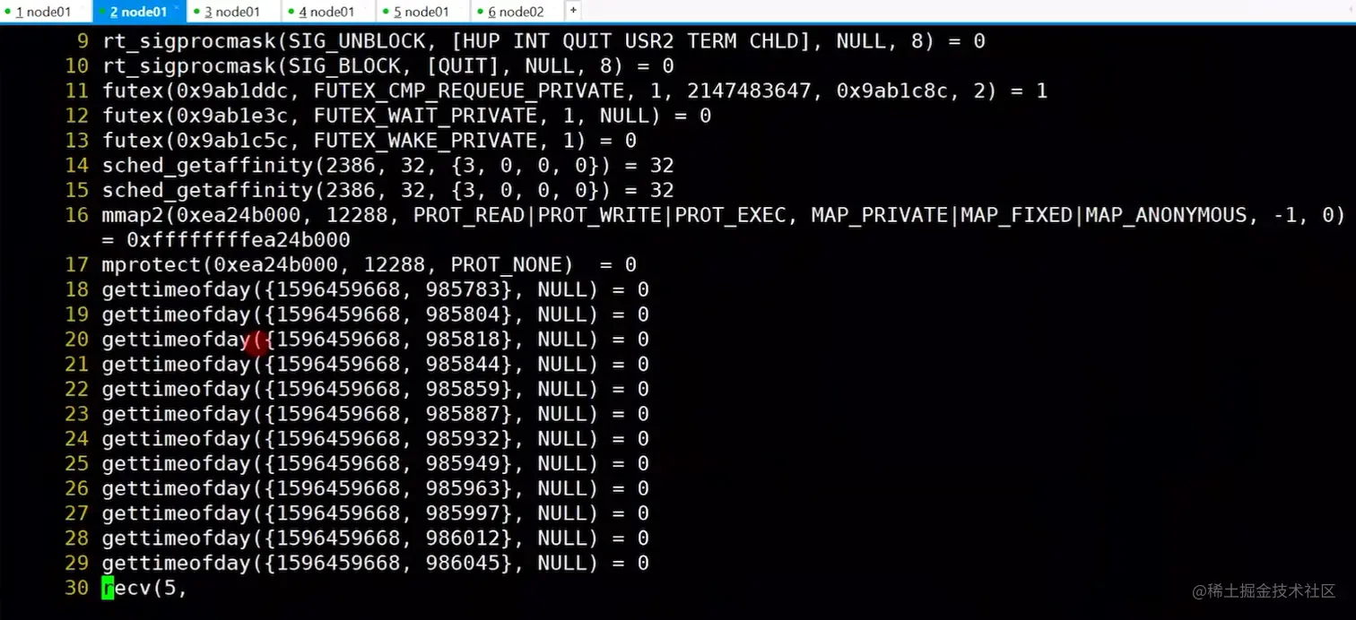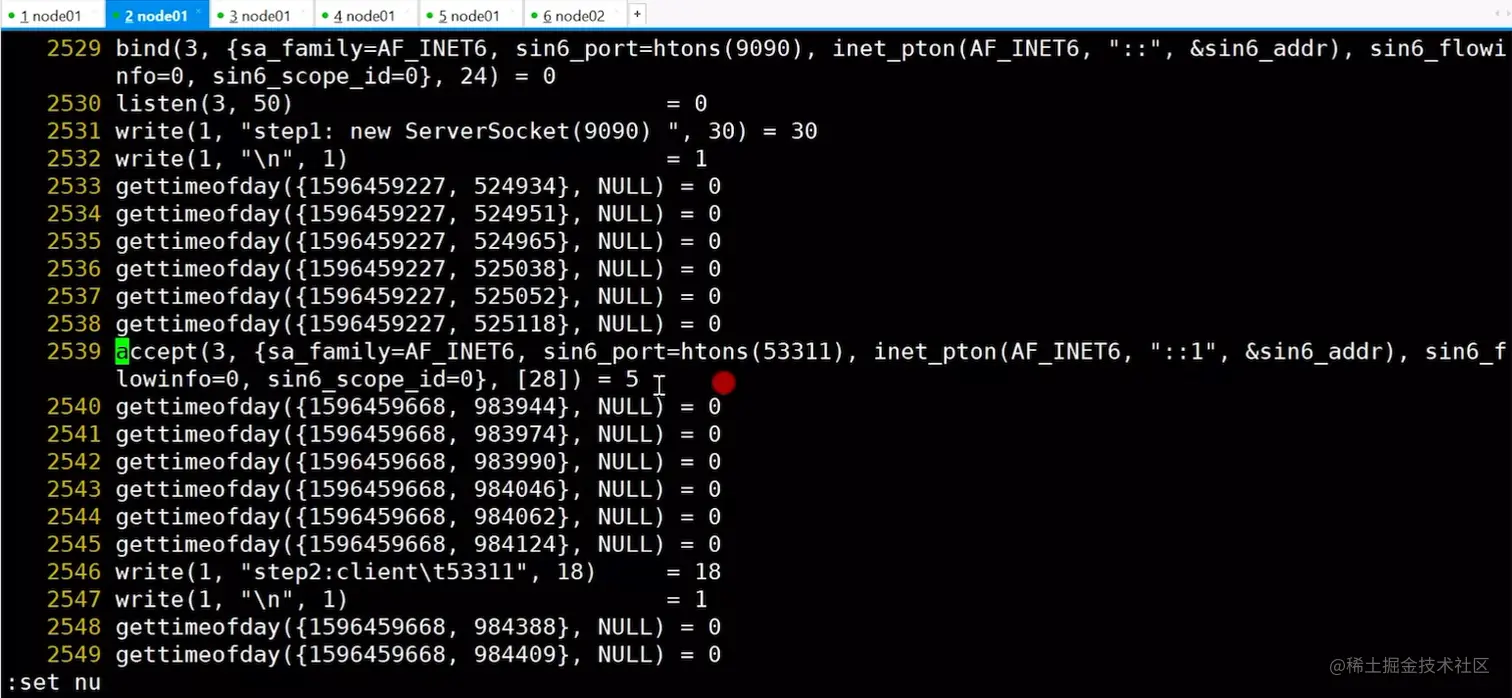 使用java SocketNIO启动程序,就会一直打印"client is null",继续使用strace -ff -o out java SocketNIO追踪程序中所有线程的系统调用,将日志输出到out开头的文件中