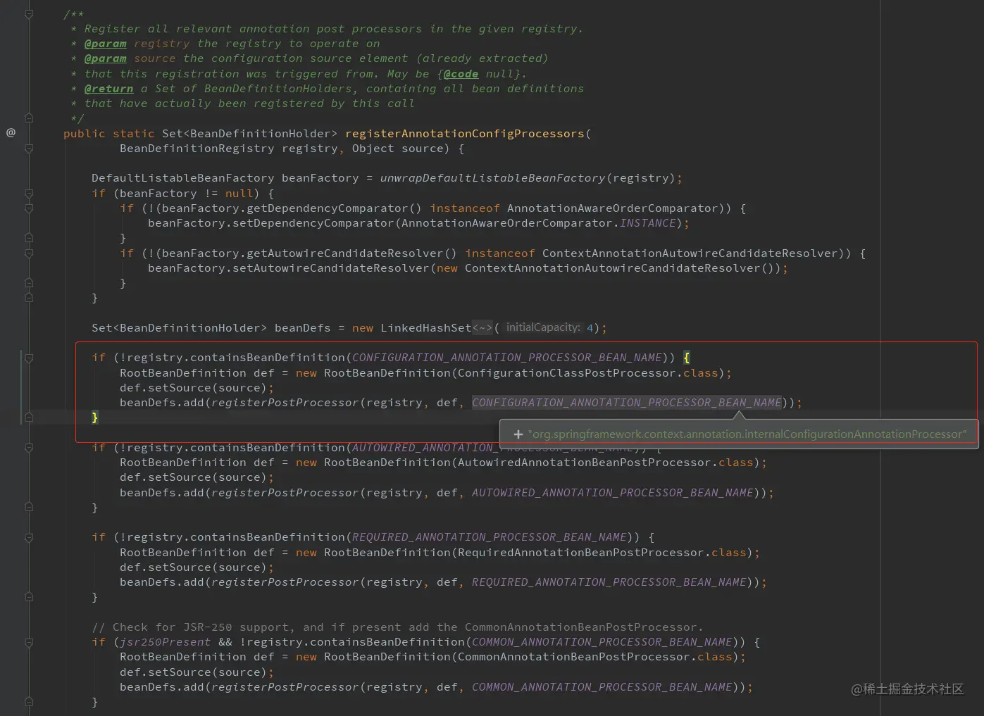 将 ConfigurationClassPostProcessor 注册到容器中, BeanName 为 org.springframework.context.annotation.internalConfigurationAnnotationProcessor