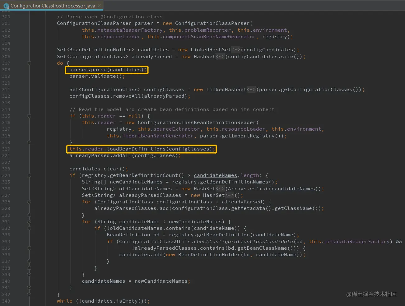 主要看步骤3,解析 @Configuration 配置类逻辑: