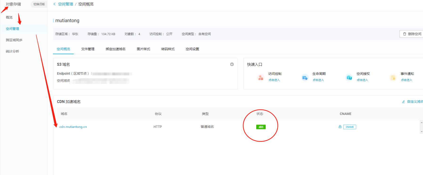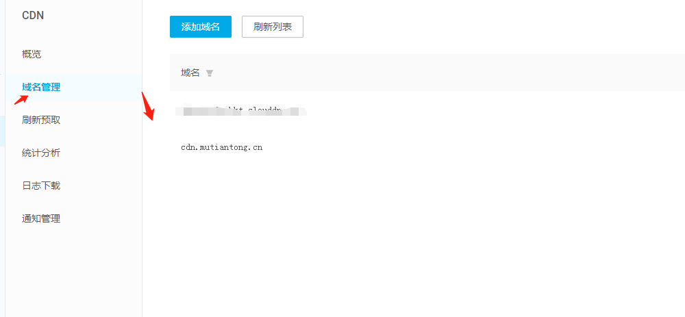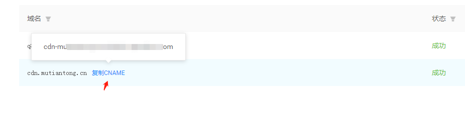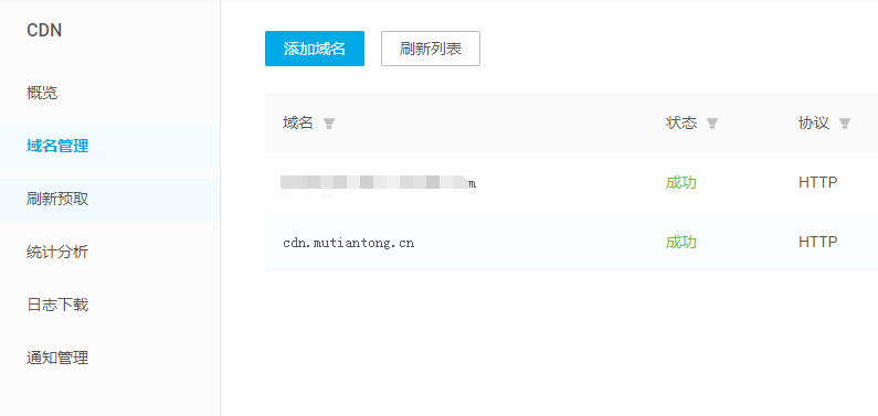 其他都是默认配置,最后点击创建即可, 成功后可以在 CDN 的界面看到如下 你刚创建的域名