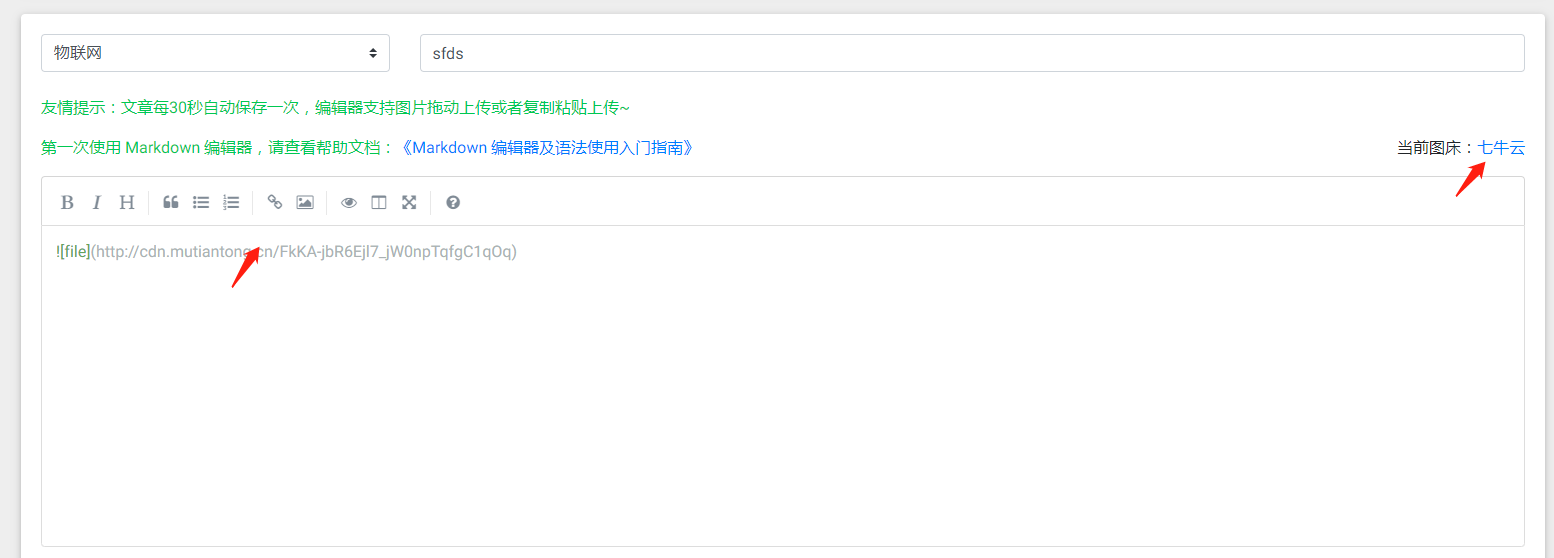 新建文章,当前图床变成 ”七牛云“