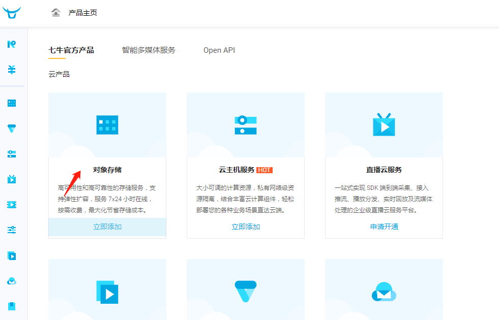 1.1 通过七牛云链接购买七牛云对象存储, 一般官方免费10G。