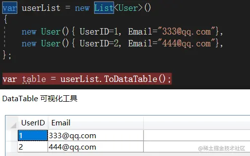 从上面源码大概可以看到,将 List 转成 DataTable 支持两种方式,要么反射,要么 Expression 解析树,默认用的是反射,性能要稍微低一点。